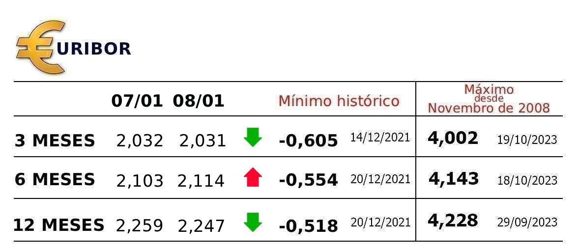 Em relação à média mensal da Euribor de Dezembro, esta voltou a subir a três, a seis e a 12 meses, mas de forma mais acentuada no prazo mais longo.