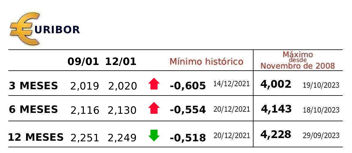 A média mensal da Euribor em Dezembro subiu 0,006 pontos para 2,048% a três meses e 0,008 pontos para 2,139% a seis meses. A 12 meses, a média mensal da Euribor avançou 0,050 pontos para 2,267%.