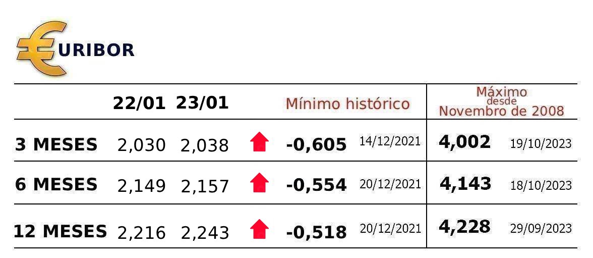 No mesmo sentido, a Euribor a três meses subiu hoje, ao ser fixada em 2,038%, mais 0,008 pontos.