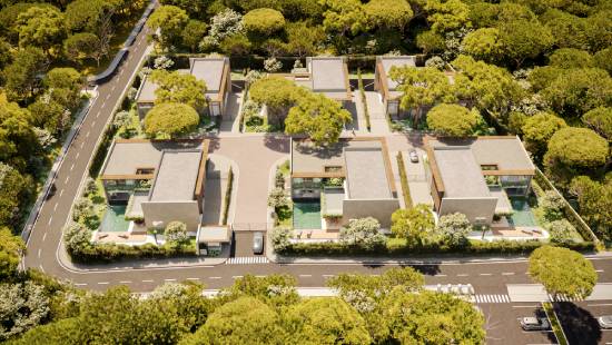 Cada moradia dispõe de 709 m² de área bruta privativa, cinco suítes, cozinha equipada com ilha, pé-direito duplo, jardim com piscina aquecida e garagem para quatro viaturas, com preços a partir de 5,6 milhões de euros .