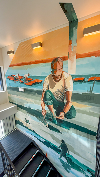 O hotel AP Eva Senses, em Faro, o já famoso 4 estrelas no centro da capital algarvia, celebrou uma parceria com o Estúdio Onze, da qual resultou um mural artístico inspirado na Ria Formosa, da autoria de Edgar Pacheco, membro fundador do estúdio algarvio. A colaboração marca também a abertura de um novo espaço de exposições no hotel, inaugurado a 6 de outubro, com uma mostra de obras do colectivo.