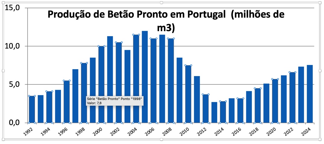 A Associação Portuguesa das Empresas de Betão Pronto – APEB – divulgou os resultados preliminares da Estatística Setorial do Betão Pronto em Portugal, que revelam que a indústria registou uma facturação de quase 700 milhões de euros e produziu 7,5 milhões de metros cúbicos de betão em 2024.
