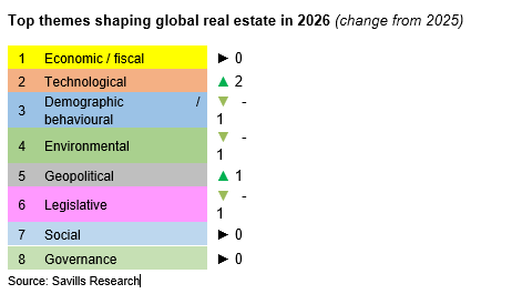 A Savills destaca a tecnologia como um dos principais temas que irão moldar o mercado imobiliário global em 2026, o segundo factor mais relevante logo após o enquadramento económico e fiscal.