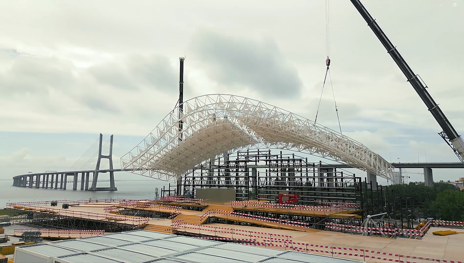 “Foi hoje concluída a montagem da cobertura principal do palco altar da Jornada Mundial da Juventude no Parque Tejo” - informa a Câmara Municipal de Lisboa. Depois da recente inauguração da ponte ciclopedonal sobre o Trancão é a vez da montagem do palco-altar chegar à sua quase conclusão. O grande cenário que irá receber o Papa Francisco começa a ganhar forma.