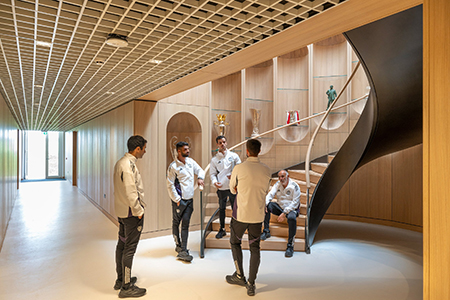 O centro inclui agora balneários de última geração, ginásio com sala de altitude, piscinas de hidroterapia, suites médicas com ressonância magnética e TAC, bem como espaços de recuperação. No piso superior, uma sala de convívio envidraçada com terraço para os campos de treino, cozinha de alto rendimento, zona de refeições e escritórios abrem caminho a um ambiente colaborativo pensado para potenciar a performance e a saúde dos jogadores.