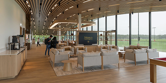 O gabinete de arquitectura Foster + Partners, responsável por ambos os projectos, concluiu recentemente a renovação do Carrington Training Complex, originalmente construído em 1999. A intervenção manteve a estrutura do edifício, mas introduziu fachadas envidraçadas e claraboias para maximizar a luz natural, além de revestimentos em madeira que criam uma sensação de conforto e bem-estar.
