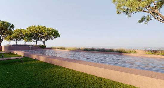 O condomínio inclui piscina aquecida, deck, ginásio, jardim central, zonas de estar e um parque pet-friendly, num ambiente fechado e seguro. A localização, entre a Rua do Campismo e a Rua dos Combatentes, tira partido do declive natural do terreno, criando patamares que favorecem vistas de mar e exposição solar.