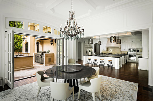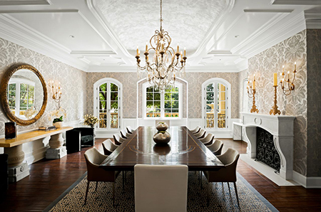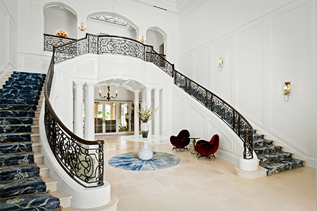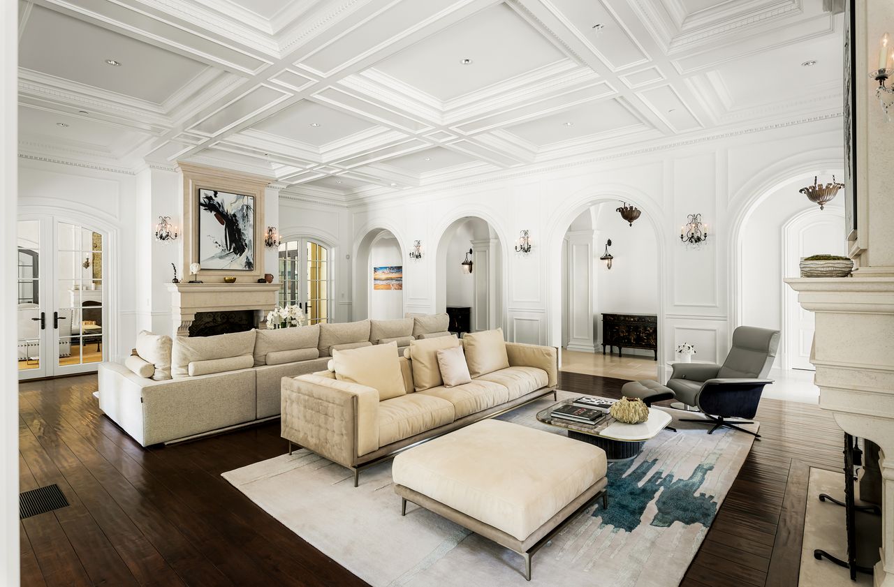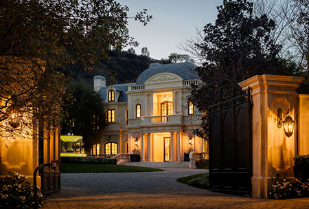 A mansão agora adquirida por Paris Hilton e seu marido, Carter Reum, por 63 milhões de dólares, segundo o The Wall Street Journal, tem 12 divisões e uma área construída de 2.790 metros quadrados. Com uma presença imponente, a casa apresenta fontes de pedra, colunas imponentes e tectos altos. Pisos de madeira, molduras complexas, ferro forjado elaborado e peças de mármore são apenas alguns dos detalhes luxuosos da mansão. Para além da deslumbrante cozinha, da sumptuosa sala de estar e da elegante sala de jantar formal, a casa inclui comodidades como uma biblioteca de dois andares, um enorme ginásio de nível profissional, um home theater de luxo e uma adega de vinhos e charutos. Inclui ainda uma área externa com piscina com gruta, campo poliesportivo e ampla casa de hóspedes.