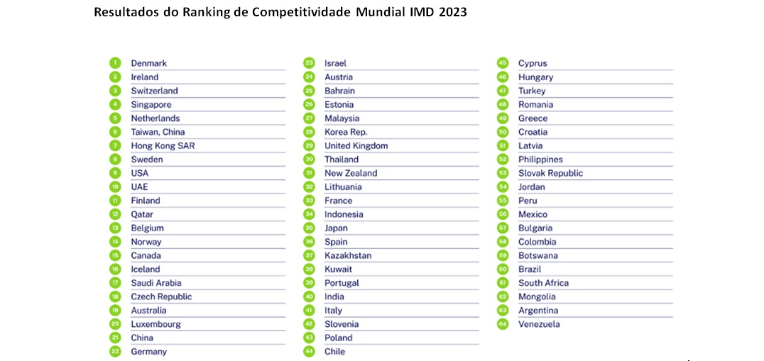 Dinamarca, Irlandae Suíça são as economias mais competitivas do mundo, de acordo com o Ranking de Competitividade Mundial 2023 do IMD. Singapura e Países Baixos completam o top 5, num ano em que claros vencedores e vencidos emergem de uma combinação de acontecimentos políticos, económicos e sociais de alcance global.