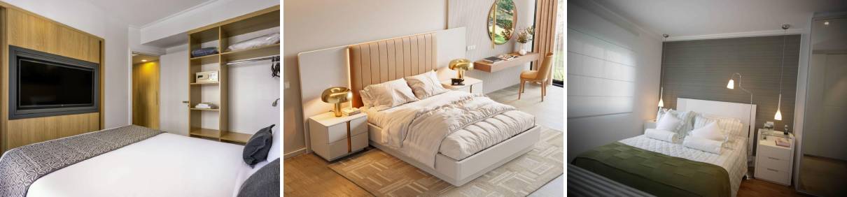 Grande parte das peças provém de quartos completos nunca utilizados. Incluem mesas de cabeceira, iluminação e elementos decorativos, permitindo recriar ambientes completos a custos reduzidos.