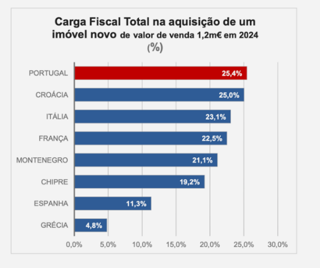 Neste estudo comparou-se a carga fiscal total, vigente em 2024, para aquisição de imóveis residenciais de segunda habitação em Portugal e nos seus concorrentes diretos do Mediterrâneo (Espanha, França, Itália, Grécia, Croácia, Chipre e Montenegro), onde se concluiu que: